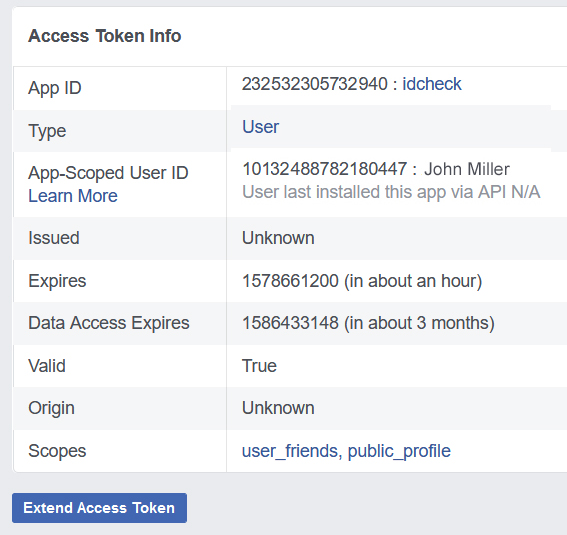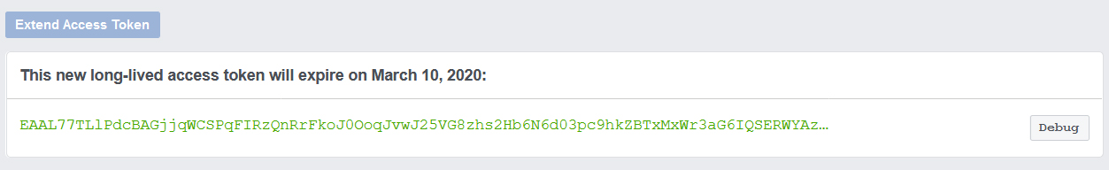 9. You will get an overview of the Access Token, including expiry details of the token. Scroll down to the botton of the page and click on 'Extend Access Token'