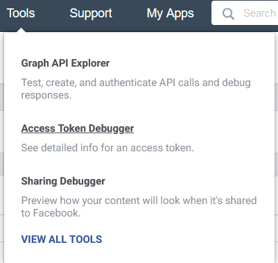 7. Go to 'Tools' menu and click on 'Access Token Debugger' to open it.