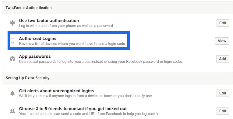 You also have the option to review the list of devices where you have not used login codes, to login into your Facebook account.