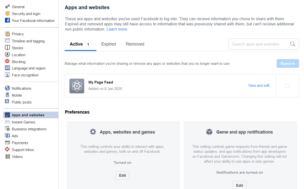 Do remember that there are two more heads there under “Apps and Websites” besides ‘Active’. One of them is ‘Expired’ which consists of apps and websites which you have given access to your Facebook account but the data access has expired over time since you have not used them for long. You should scrutinize apps and websites here too and disable / remove them from your Facebook account if you may find them to be suspicious or of no further use.