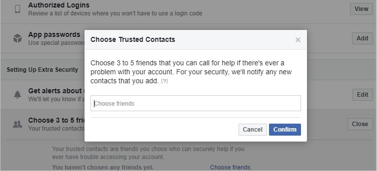 5. Nominate Trusted Friends in Facebook for your Account